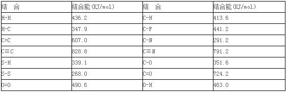 表1:部分化學分子鍵的結合能
